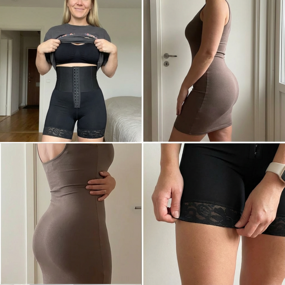 Omedelbar timglasfigur: Kroppen formas direkt för en slankare midja och mer definierade kurvor.